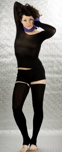 Light Grey Get In Shape Sexy Dancewear Outfit By KD Dance, Stretch Knit Ballet Top, Boy Shorts & Thigh High Leg Warmers, High Quality Soft & Durable, Made In New York USA Large